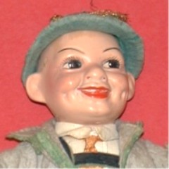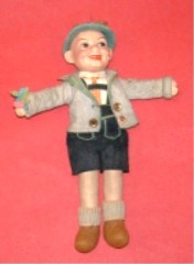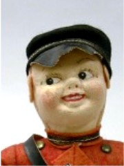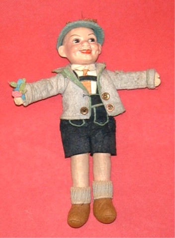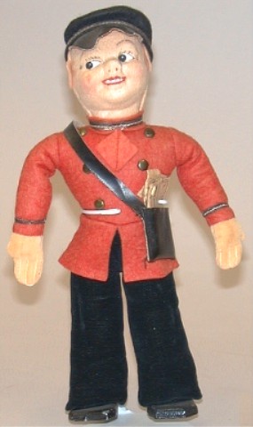 Chad Valley or Nora Welling 9 inch tall Danish postman. Painted features. Good condition. A very hard to find doll.