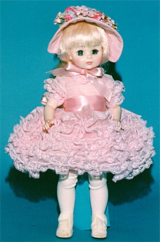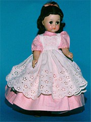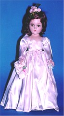 18 inch composition. 1939 - 1944 Brides Maid, (Wendy-Ann) All original. Satin dress, & matching muff. AX 101 $495.00 sold |