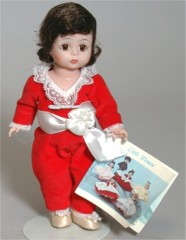 Madame Alexander Red Boy B.K. is 8 inches tall, hard plastic, Bent Knee, made in 1972. Wendy face. From the series Story land dolls. Red Boy is in very good condition. Still has wrist booklet. Red velvet out fit has no fading.