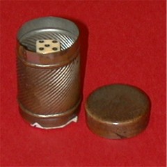 Metal case with 3 pair of dice. Case is 1 1/4 inches tall. Dice 1/4 inch.