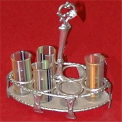 Doll House Glass Set. 2 1/4 inches tall by 2 inches long. Missing 2 glasses.