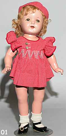 "NANCY" 19 INCHES+ TALL. ORIGINAL CLOTHES,COMPOSITION BODY IS IN GOOD CONDITION, MADE IS 1930. SHE WAS MADE TO BE A PATSY LOOK-A-LIKE HER EYES ARE SLEEP AND WORK WELL. SHE IS VERY HARD TO FIND AND THIS IS A NICE EXAMPLE. SHE WAS MADE BY THE ARRANBEE DOLL CO. $485.00