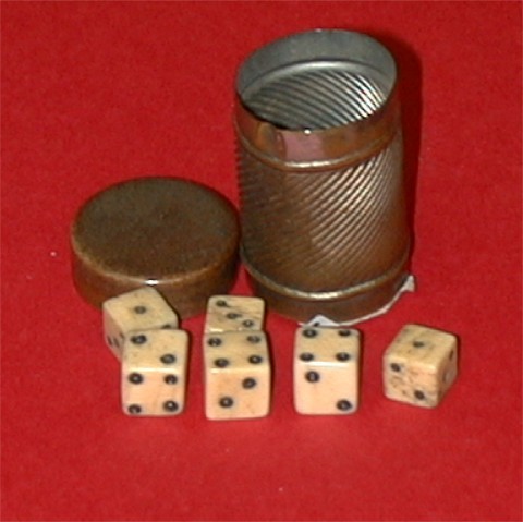 Metal case with 3 pair of dice. Case is 1 1/4 inches tall. Dice 1/4 inch.
