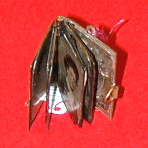 da109Miniature photograph album one inch by 3/4 inch. 6 tin type photos in side. |