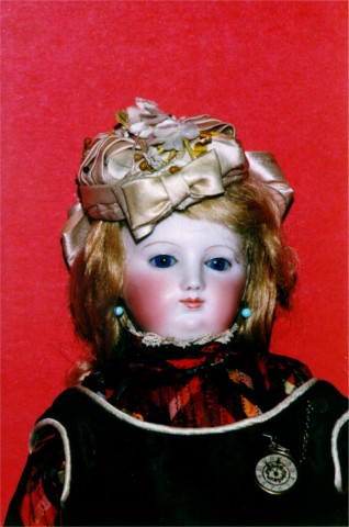 18 inch French Fashion. Unmarked bisque shoulder head, swivel neck, excellent kid body. Perfect beautiful bisque.