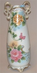 12 1/2 inch tall unmarked Nippon type vase. No cracks or chips. Some ware to gold on top of handles.